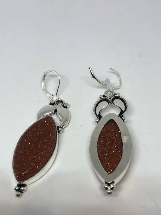 Vintage Chandelier Earrings Golden sandstone Silver Dangle