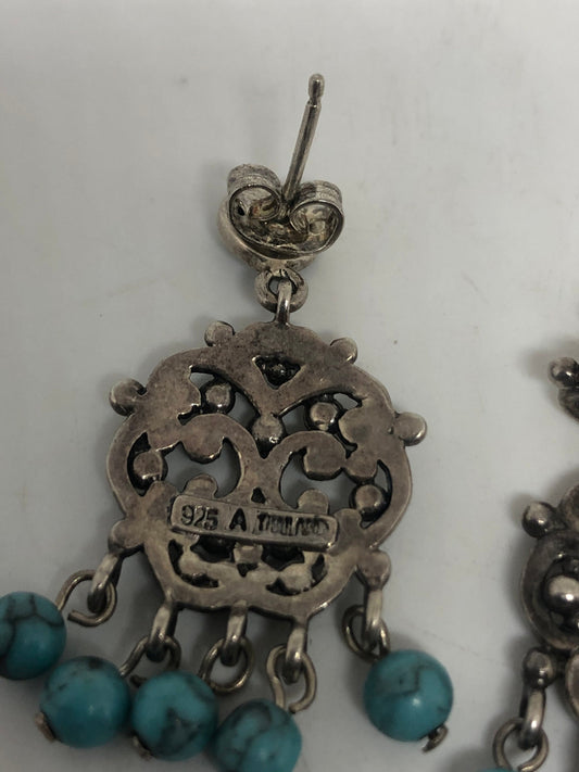 Vintage Blue Persian turquoise Earrings 925 Sterling Silver Dangle Chandelier