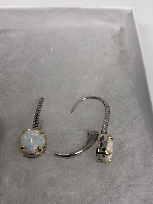 Vintage White Opal Earrings White Sapphire 925 Sterling Silver Dangle