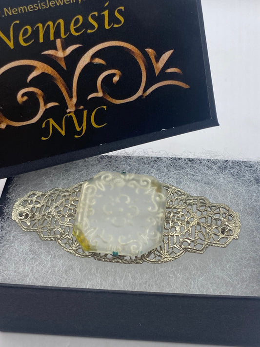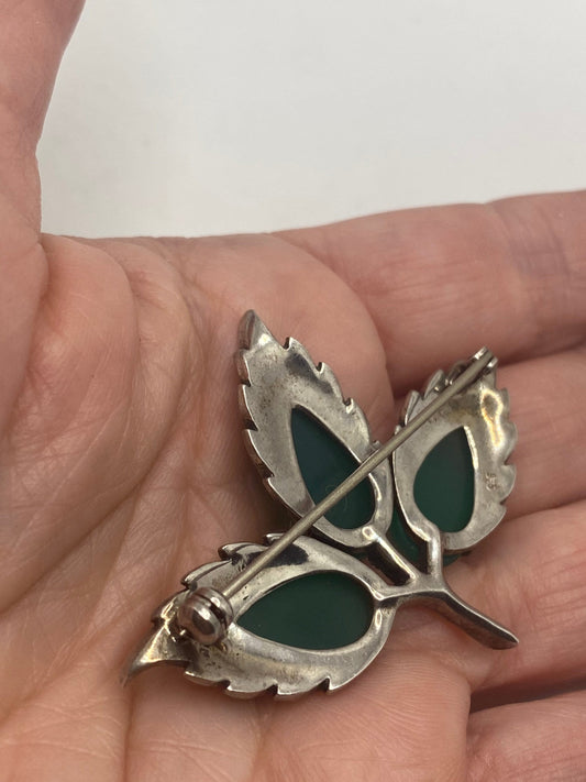 Vintage Green Onyx Pin Marcasite 925 Sterling Silver Brooch