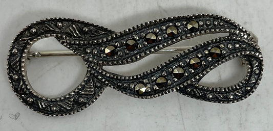 Vintage Pin Marcasite 925 Sterling Silver Brooch