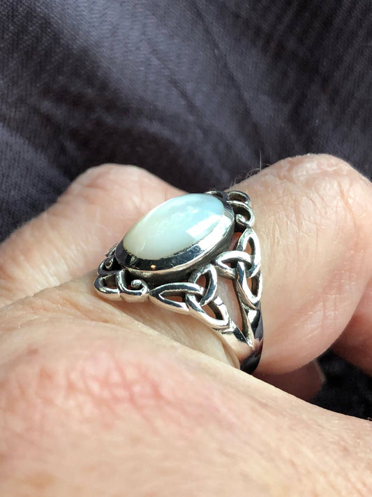 Antique White Mother of Pearl Filigree Sterling Silver Ring
