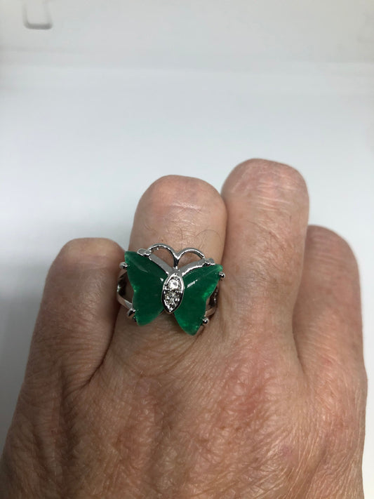 Vintage Lucky Green Nephrite Jade Butterfly ring