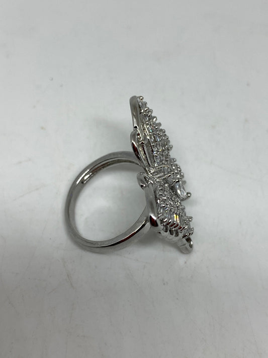 Vintage Butterfly Ring White Gold filled Deco Cocktail