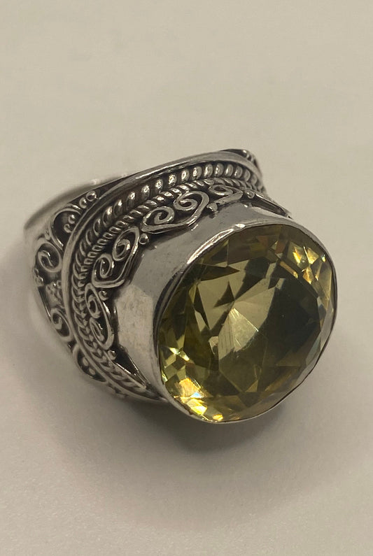 Vintage White Sapphire Crystal Citrine Sterling Silver Ring