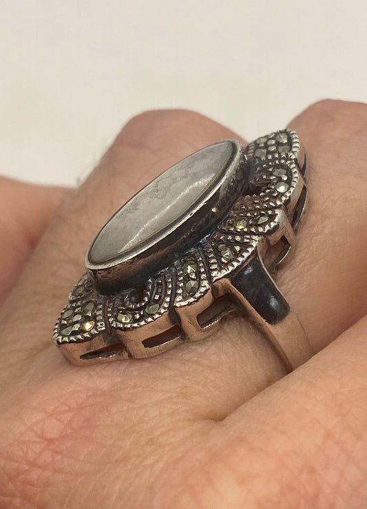 Vintage Mother of Pearl 925 Sterling Silver Marcasite Ring