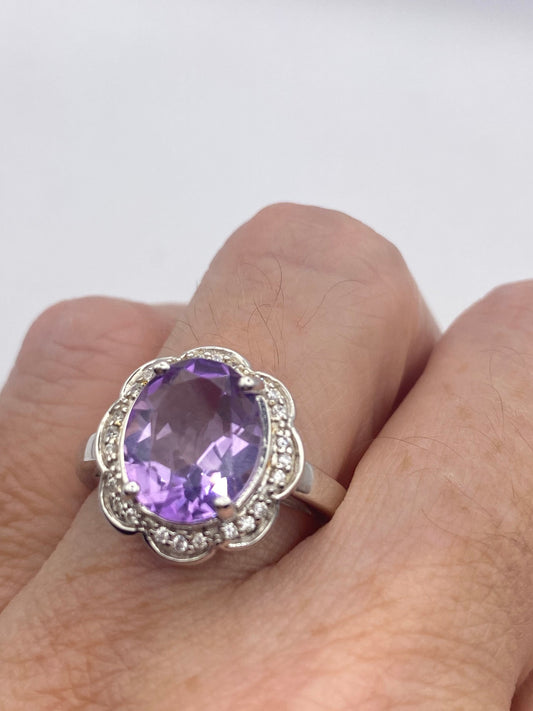 Vintage Purple Amethyst and Diamond Promise Ring Deco 925 Sterling Silver