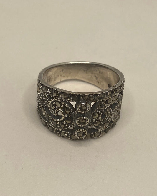 Vintage Handmade Genuine Swiss Marcasite Setting 925 Sterling Silver Gothic Ring