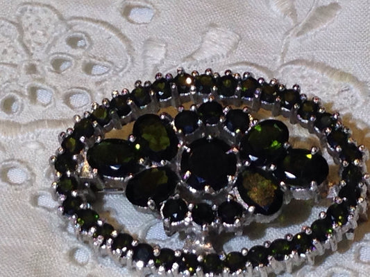 Vintage Handmade Green Toumaline Sterling Silver/Rhodium Star Brooch/Pendant