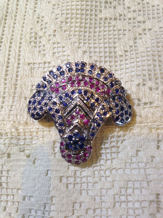 Vintage Gemstone Ruby Sapphire 925 Sterling Silver Flower Basket Pin Pendant