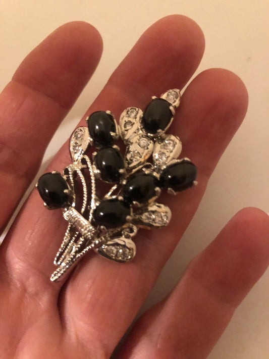 Vintage Pin Black Onyx 925 Sterling Silver Brooch
