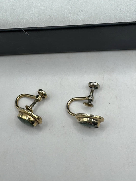 Vintage Genuine Green Jade Gemstone 12k Gold Filled Screw Clip Earrings