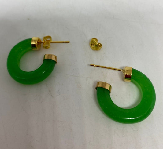 Vintage Fun Green Jade Hoop Earrings in Bronze